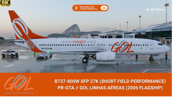 The PR-GTA GOL Linhas Aéreas add-on features a highly detailed Boeing 737-800W SFP in the special "Flagship 2006 – Time de...