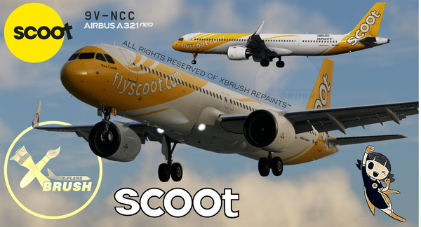 The ToLiss A321Neo Scoot 9V-NCC Pina Colada add-on for X-Plane 11/12 features a meticulously crafted livery of the Singapo...